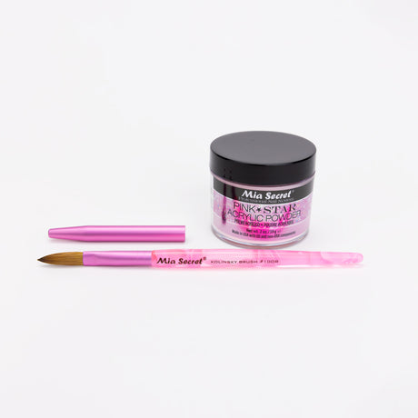 Mia Selects (Pink STAR Acrylic Powder 2 oz., Kolinsky Nail Brush 10 OR)